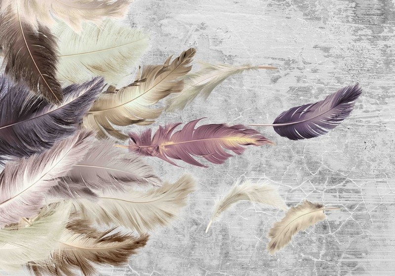 Antrasit Zeminli Fuşya Tüy Desenli Duvar Kağıdı