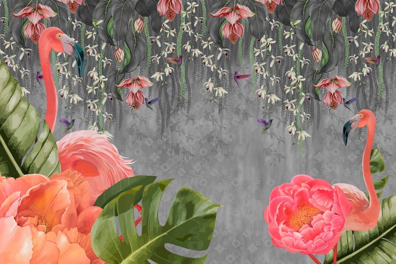 Yılmaz Home Collection‘ın en çok tercih edilen tropikal tasarımlarından biri olan bu özel model, gri betonun maskülen dokusunu mercan renkli flamingoların ve egzotik çiçeklerin feminen zarafetiyle harmanlıyor. Üst kısımdan sarkan tropikal bitkiler ve zarif kolibrilerle zenginleşen kompozisyon, mekanınıza derinlik ve seçkin bir atmosfer katar. Yüksek çözünürlüklü HD dijital baskı kalitesiyle her fırça darbesi ve doku detayı duvarınızda hayat bulur. Leke tutmayan, silinebilir ve anti-bakteriyel yapısı ile uzun ömürlü ve hijyenik bir kullanım sunan bu tasarım, modern salonlardan yatak odalarına kadar her alanda fark yaratır.