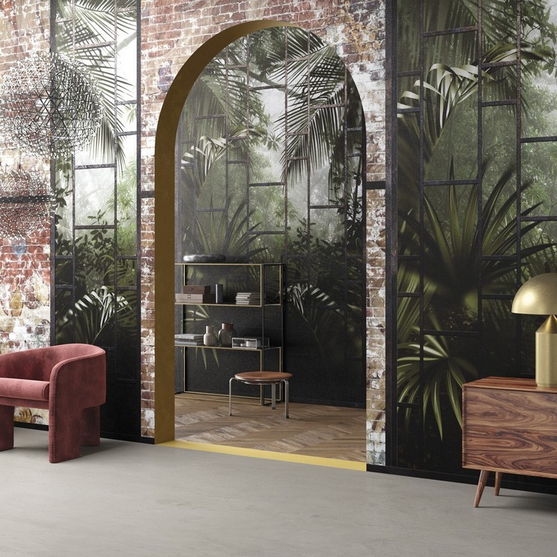 Yılmaz Home Collection‘ın bu özgün tasarımı, eskitme tuğla duvarın köklü duruşunu tropikal palmiye yapraklarının egzotik yeşiliyle buluşturuyor. Pencere efekti veren modern geometrik çizgiler, mekanınıza sanatsal bir derinlik katarken tuğla kırmızısının sıcak tonları iç mekanınıza davetkar bir atmosfer sağlar. Bursa’daki butik üretim merkezimizde her duvarın ölçüsüne göre titizlikle hazırlanan bu panoramik duvar kağıdı, yüksek kaliteli silinebilir yapısıyla hem estetik hem de pratik bir kullanım sunar.