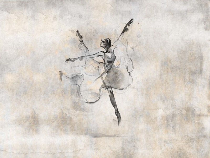Sanatsal Balerin Figürlü ve Modern Fırça Darbeli Duvar Kağıdı