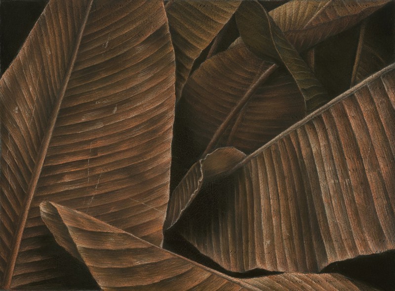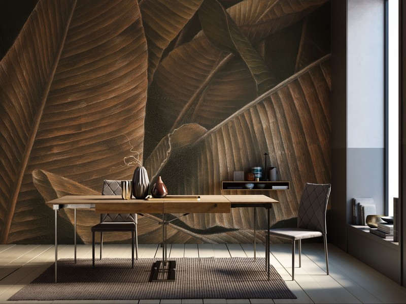 Sepya Tonlu Dev Kurutulmuş Yaprak Desenli Duvar Kağıdı