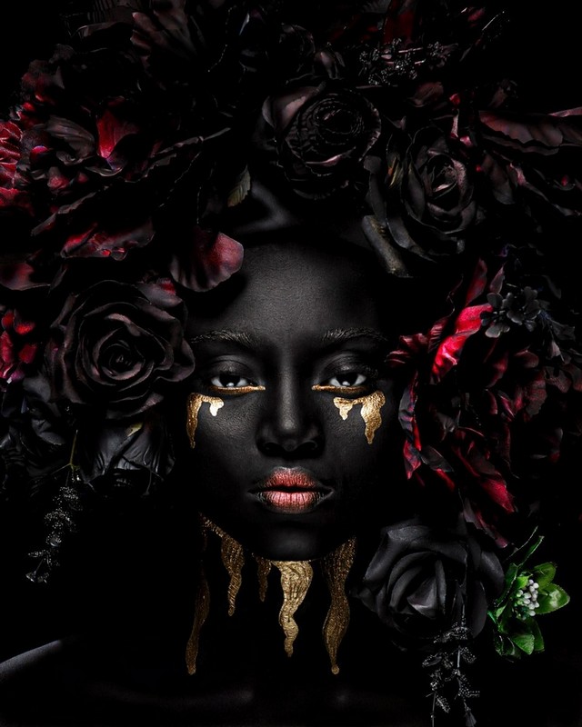 Siyah Güllü ve Altın Varaklı Portre Duvar Kağıdı