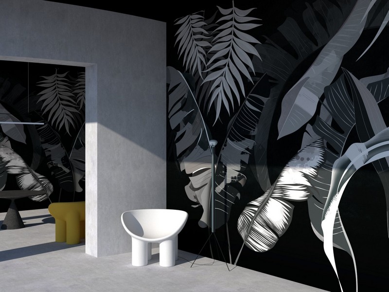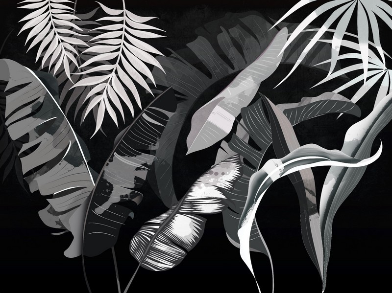 Siyah Zemin Metalik Muz ve Palmiye Yaprağı Duvar Kağıdı