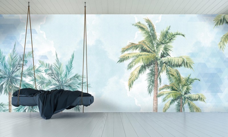 Yılmaz Home Collection imzası taşıyan bu 3D dijital baskı duvar kağıdı, kristal berraklığındaki turkuaz gökyüzü zeminini asil palmiye ağaçlarıyla birleştirerek mekanınıza sonsuz bir ferahlık katar. Özel ölçü duvar kağıdı seçeneğiyle her duvara tam uyum sağlayan bu tasarım, yüksek çözünürlüklü dijital baskı kalitesiyle duvarlarınızda gerçek bir yaz esintisi yaratır. Silinebilir, leke tutmayan ve anti-bakteriyel dokusuyla bu duvar posteri, 2026 ev dekorasyon trendlerinin en aydınlık ve prestijli örneklerinden birini sunar.
